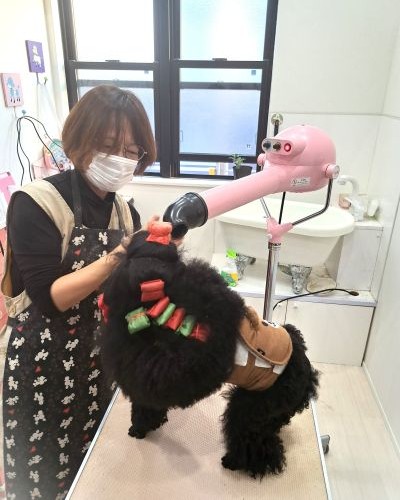 このような流れでワンちゃんを可愛くいたします。